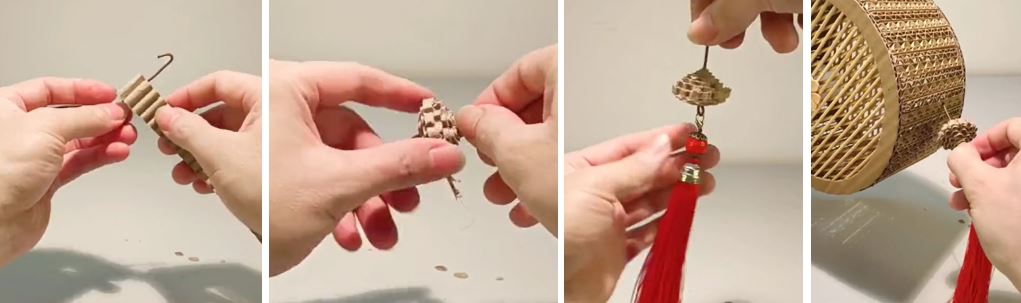 - Mỗi vòng tròn xuyên que tre/ gỗ như hình sau.